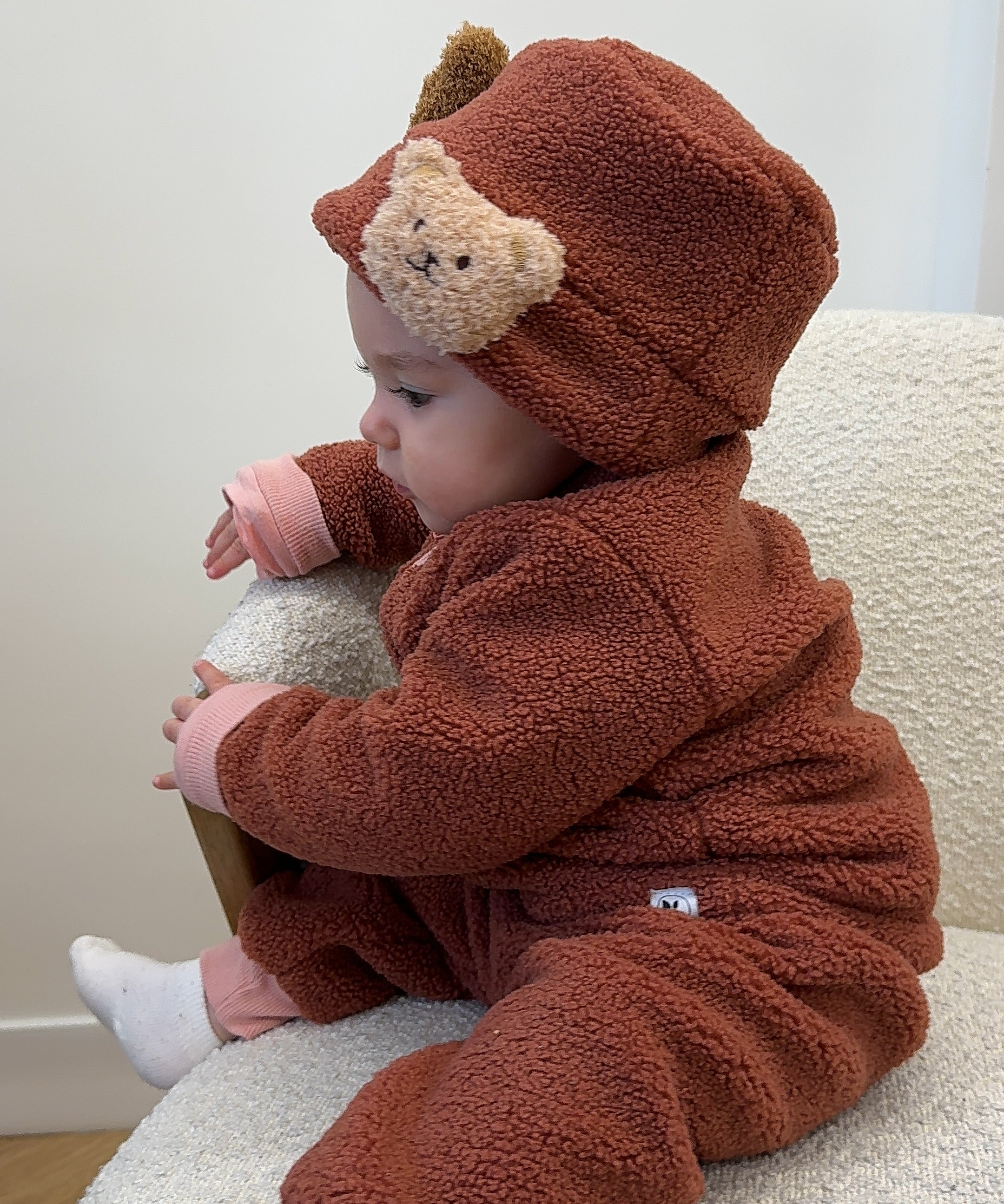 I took inspiration from the ritual of layering and designed a triple-layered playsuit with plush sherpa on the outside to trap and retain heat and a soft bamboo lining with sewn-in seams to feel delicate against the skin.